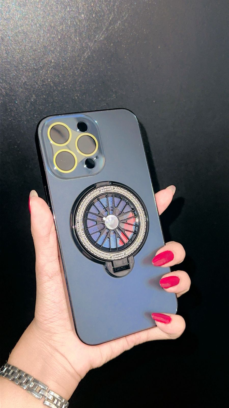 The wheel seems to function as a phone grip or stand, possibly rotatable or pop-out.